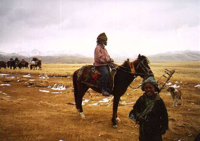 楽器チベッタンギタ−(ダニエン)を持つ少年