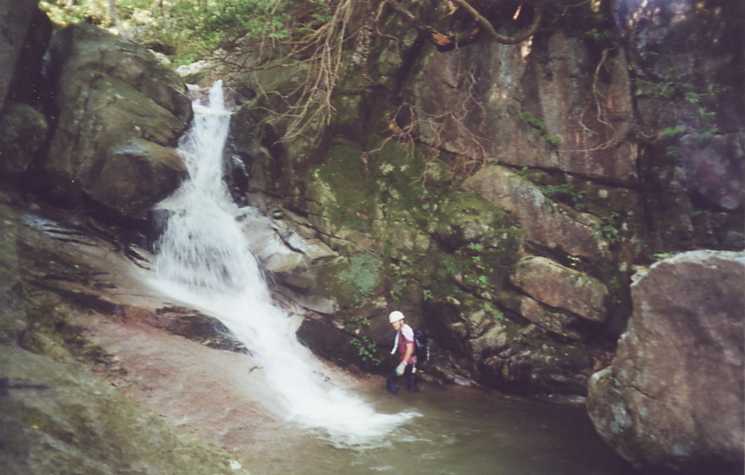 この滝が難関、池内君が空身でハ−ケンを打ち滝芯を登りきりました。登りきると巻き道から見ていた他のパ−ティから歓声、拍手