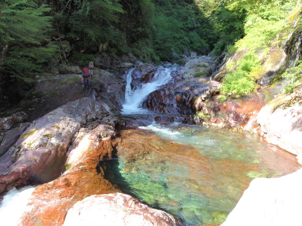 ラジオラリア板岩の赤と青緑の水のコントラストが美しい